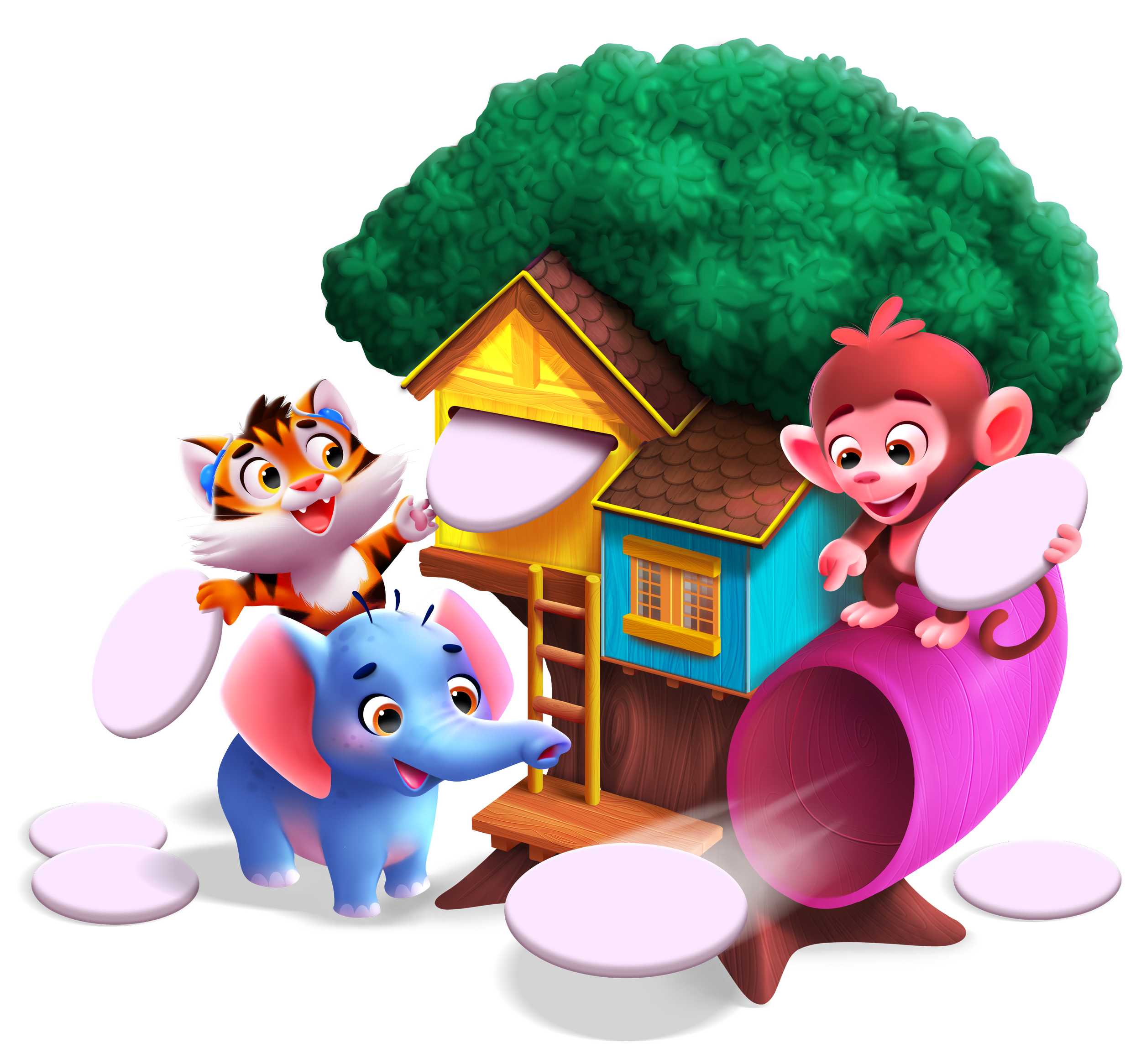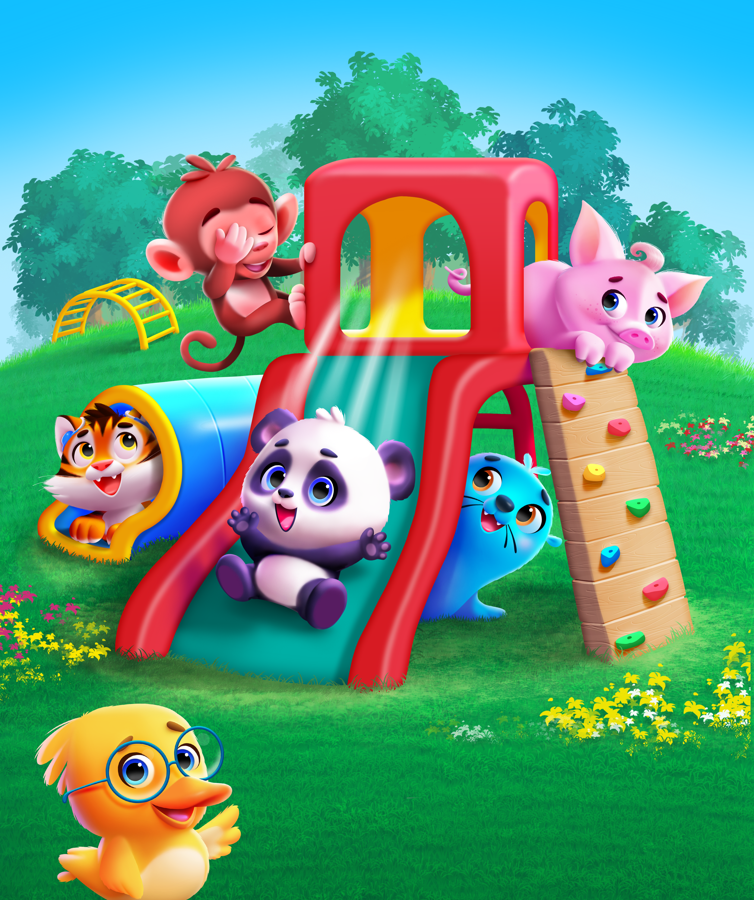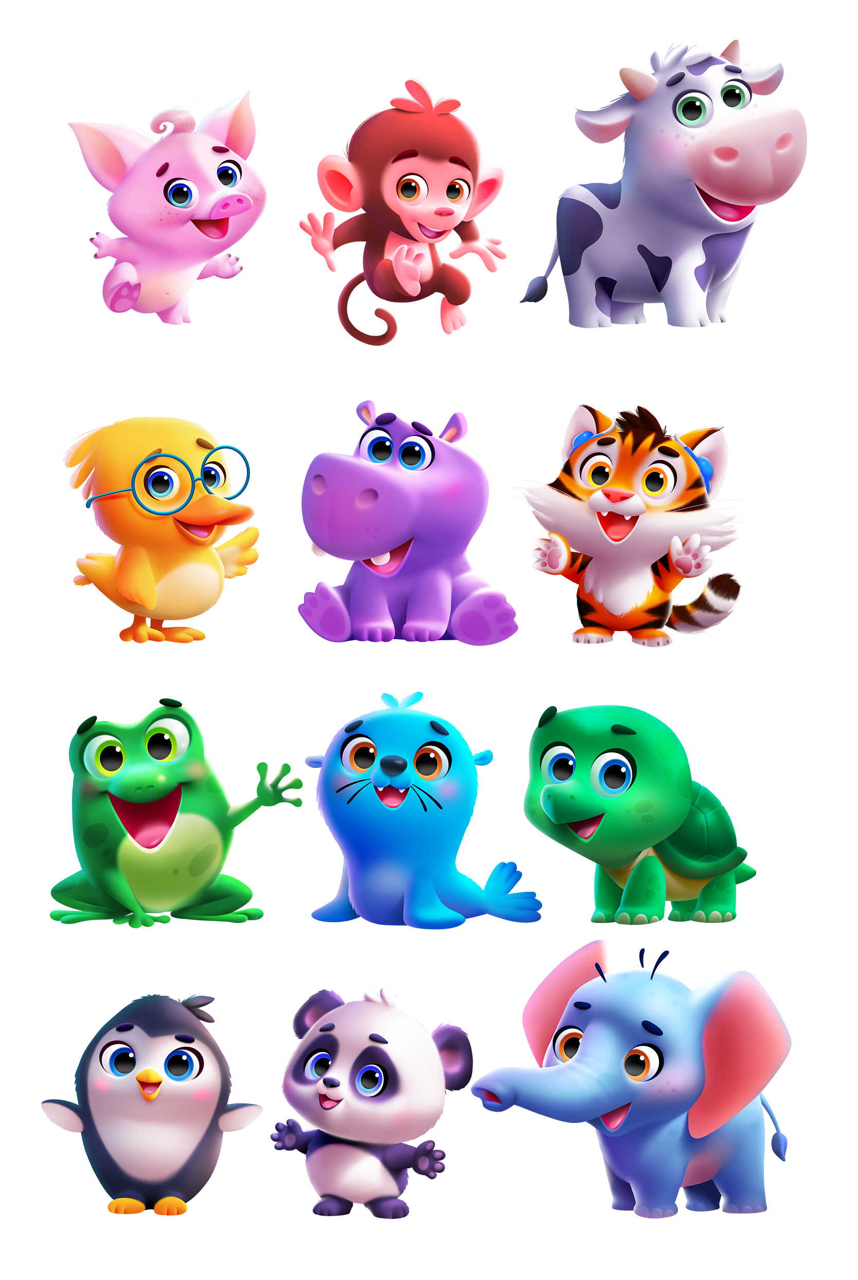 Strategic Character Design: Created expressive animal personalities through bold shape language and "big-eye" aesthetics, fostering immediate emotional trust and instant brand appeal for young children.