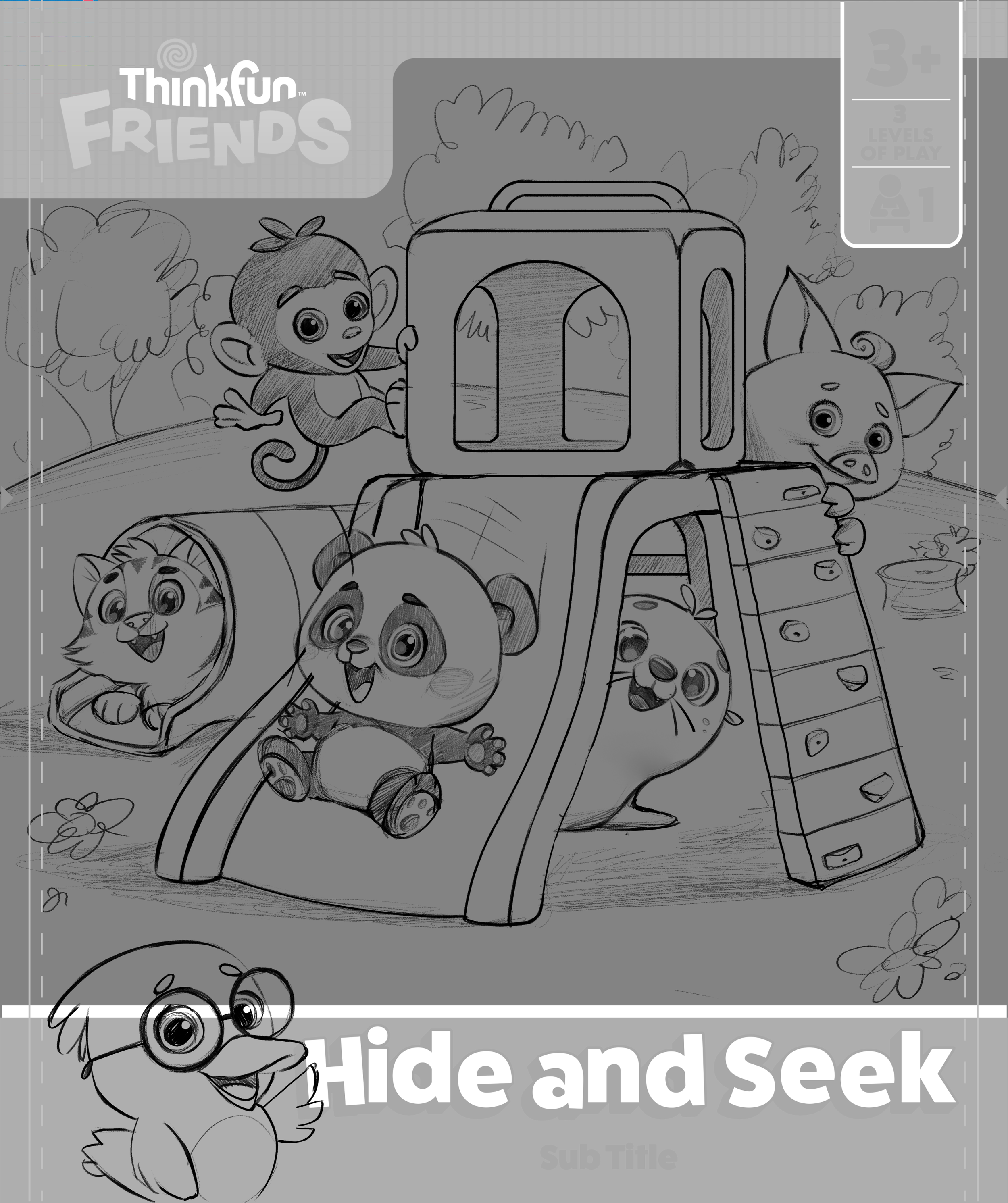 Vibrant, narrative-driven box art designed to bring the world of ThinkFun Friends to life.
