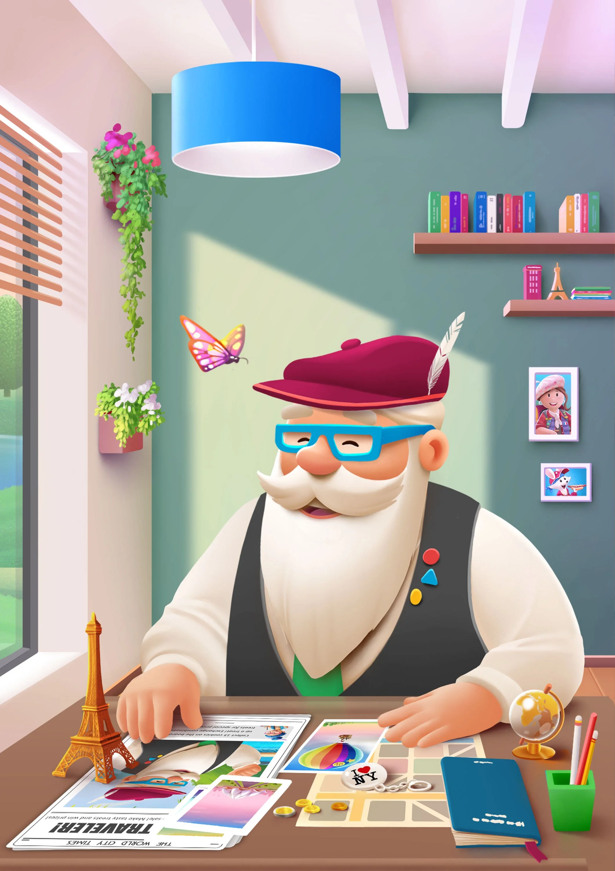 To deepen the player's immersion, I painted atmospheric scenes representing global destinations like Venice and Amsterdam, as well as narrative moments featuring the game's main cast planning their next journey.