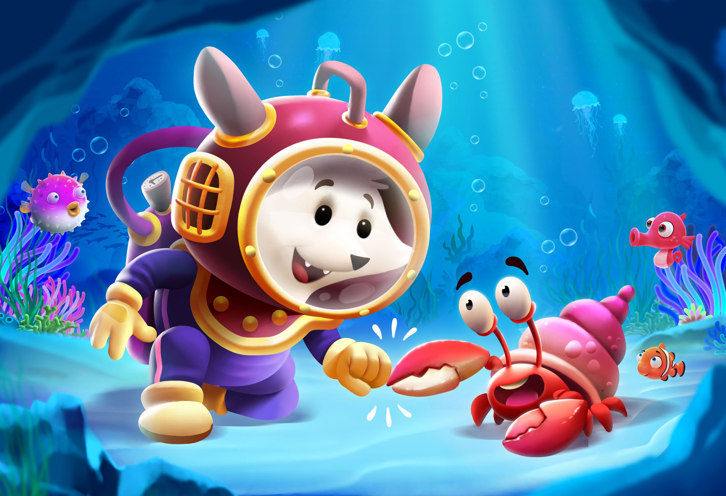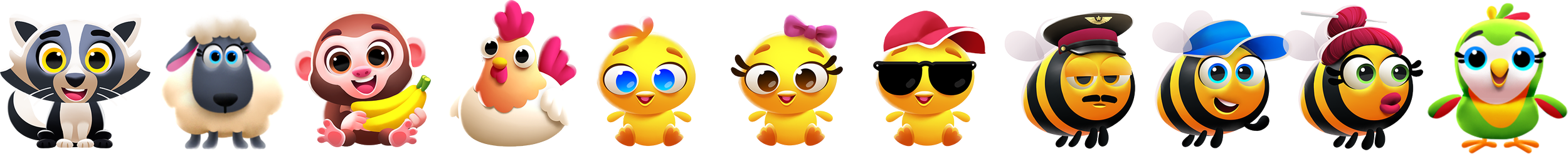 I designed a cast of lovable animal characters to serve as interactive tokens for the match-3 board. The goal was to create assets that were distinct and instantly readable for quick gameplay, while maintaining a high-quality, 3D-rendered look. From a pilot bee to a mischievous monkey, each character was designed with unique expressions and vibrant silhouettes to ensure they 'pop' against the game background.