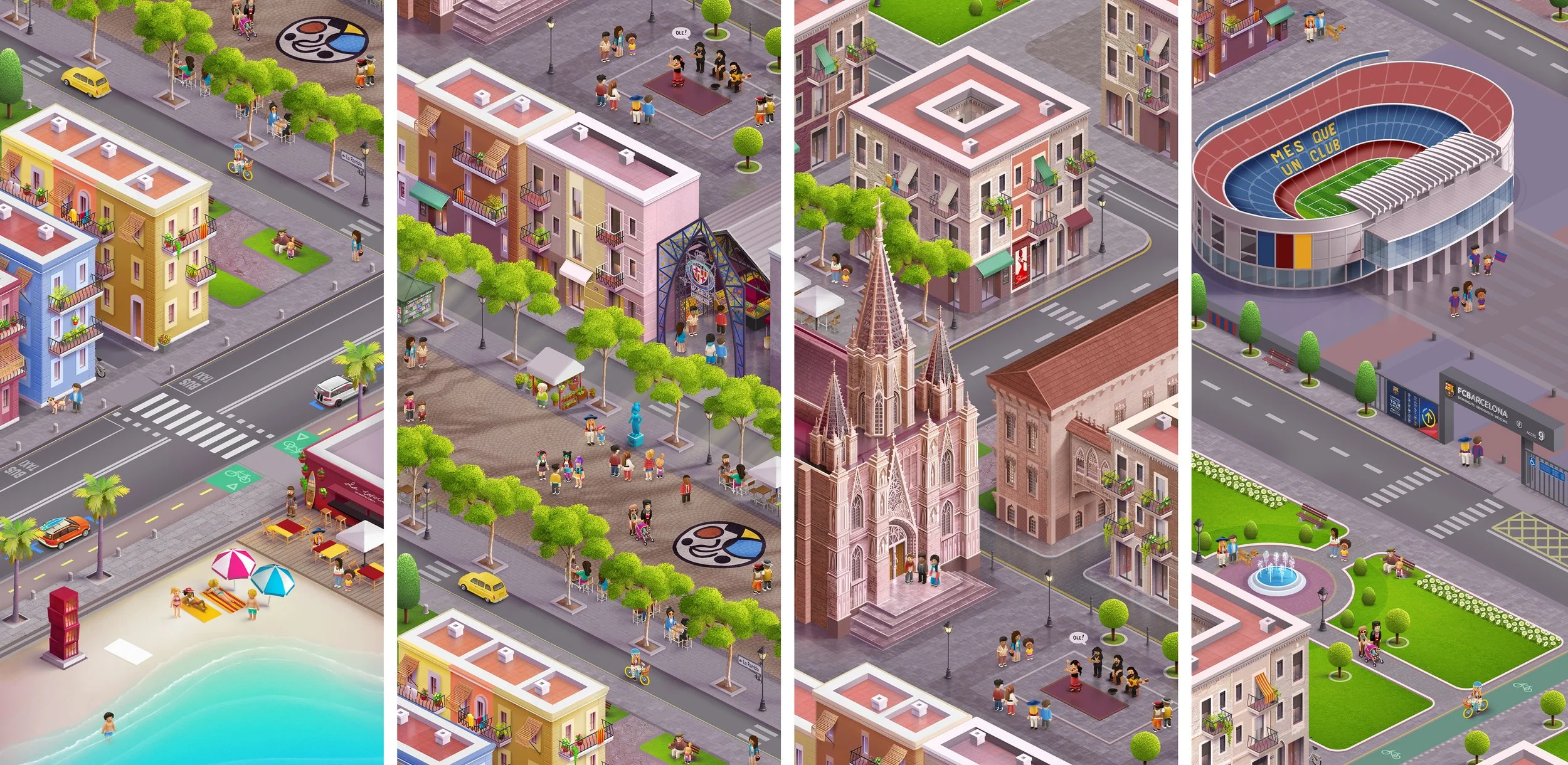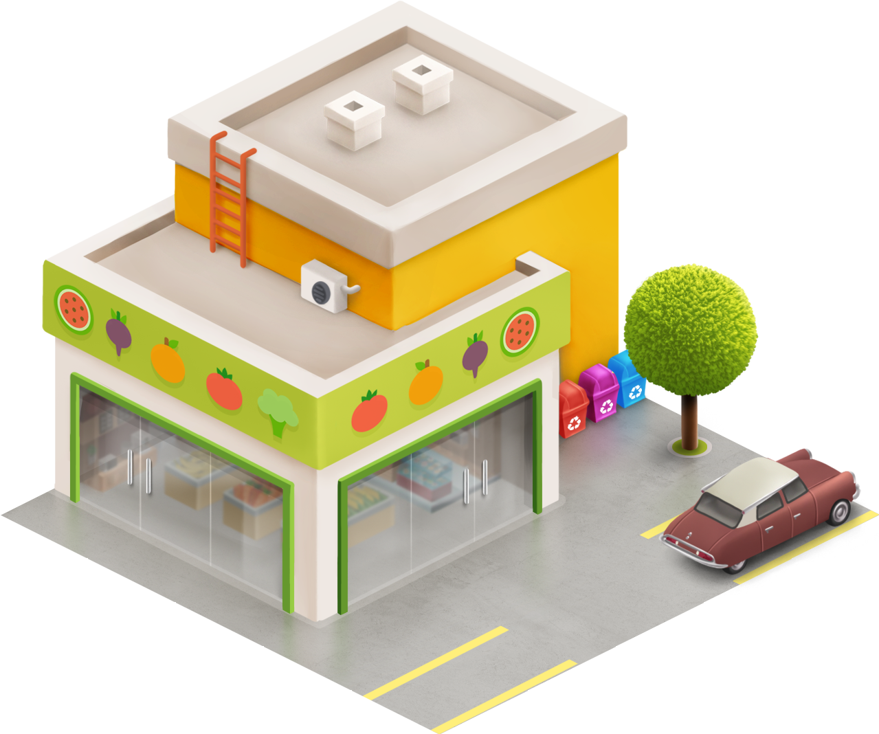 Playful Proportions: While maintaining a sense of realism, the assets utilize slightly exaggerated features, like oversized signage and bold color blocking, to ensure readability at small zoom levels on mobile screens.
