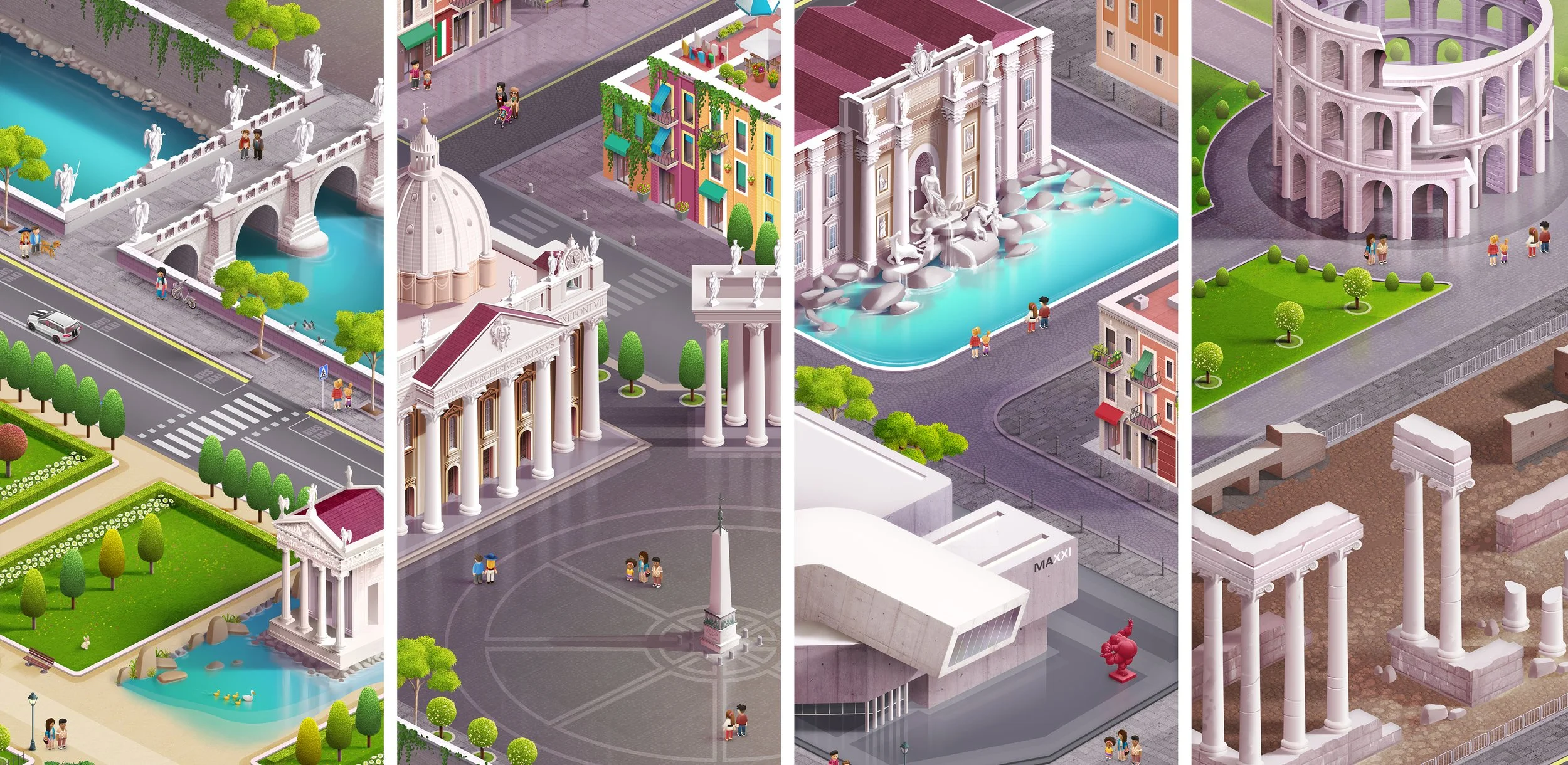 Isometric Map Design: Created seamless, scrolling cityscapes for major world capitals.