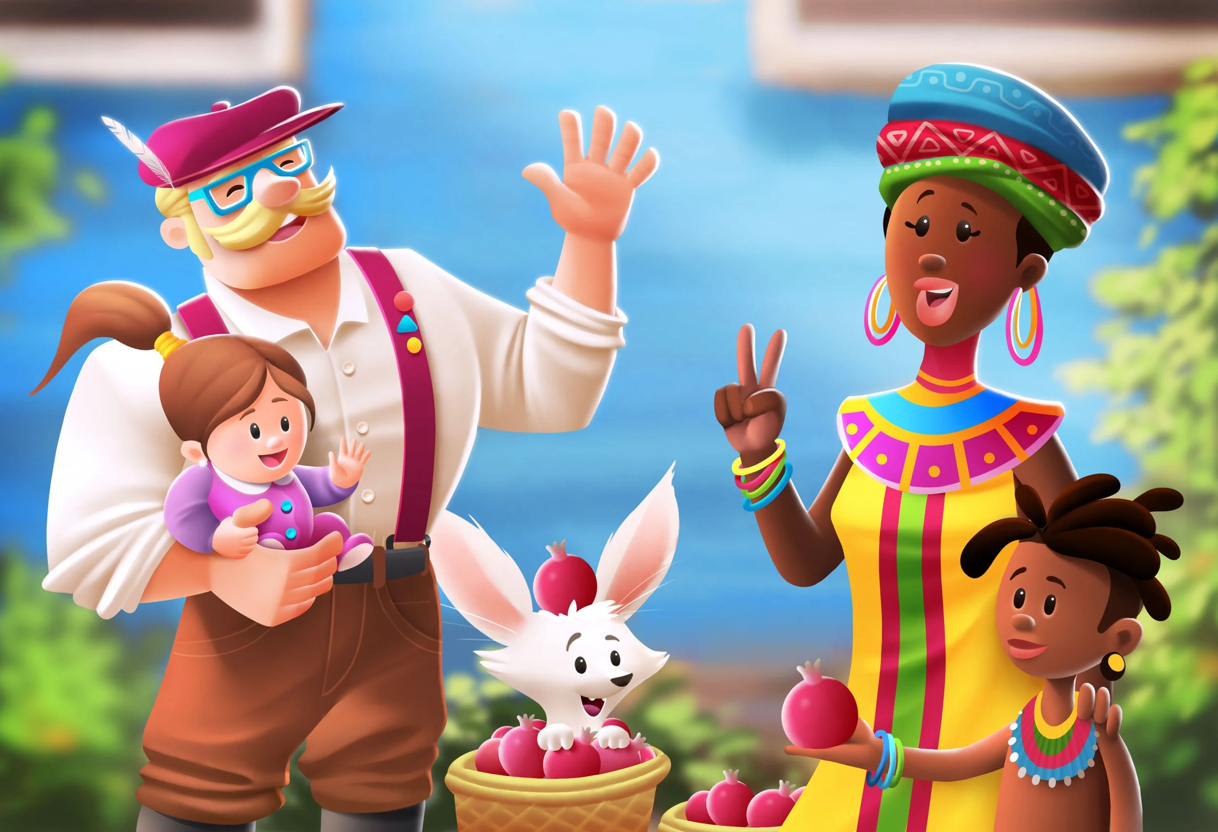 I was responsible for creating all the characters in the game, defining their personalities and visual identity. I also designed the app icon and logo, ensuring strong brand recognition and appeal on mobile stores. In addition, I illustrated several key environments and location-based assets, helping shape the overall look and feel of the game’s destinations.